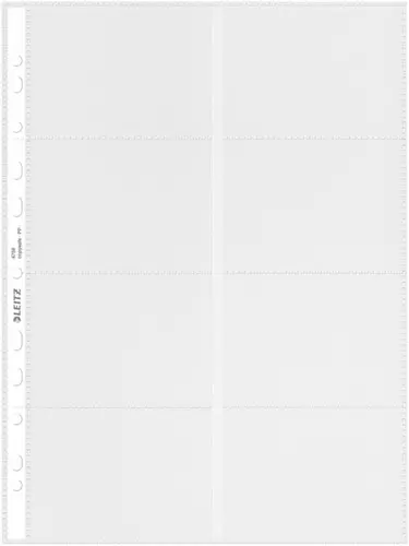 Showtas met 8 verdelingen voor visitekaartjes. Door meerdere perforatiegaten zijn visitekaartjes handig op te bergen in ordners en ringbanden.