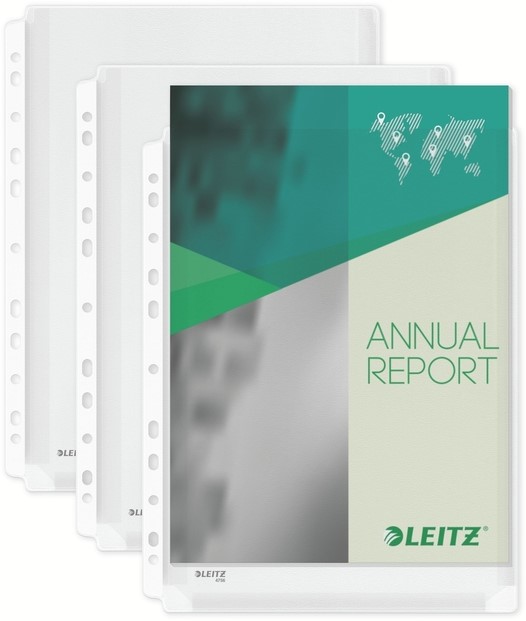Harmonica showtas Leitz Premium 0.17mm metalen perforatiestrip copy safe A4 glashelder 3 stuks