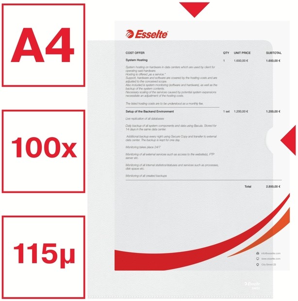 Insteekmap L-model Esselte standaard copy safe PP A4 transparant 100 stuks