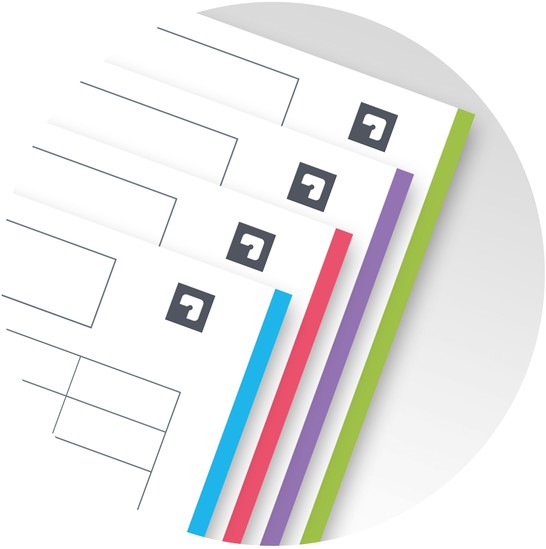 Dankzij de tags op de pagina’s kunnen aantekeningen eenvoudig worden gescand met de Scribzee app en digitaal worden opgeslagen.