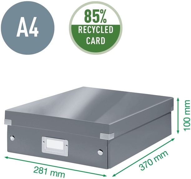 Opbergdoos Leitz Wow Click & Store organiser 280x100x370mm middel gerecycled karton zwart
