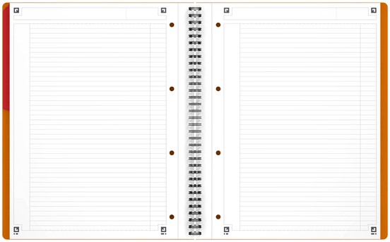 De robuuste zwarte dubbele spiraalbinding zorgt ervoor dat het notebook plat blijft liggen of gemakkelijk dichtgeklapt kan worden voor een maximaal comfort en flexibiliteit.