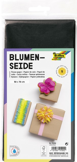 Zijdevloeipapier Folia 50x70cm 20gr nr90 zwart 5 vel