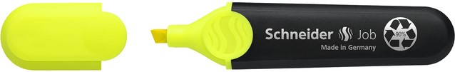 Markeerstift met twee lijndiktes in één punt, 1+5 mm. Markeringskleur: geel. De markeerstift Job is de eerste markeerstift die voor meer dan 90% uit gerecycled materiaal bestaat en is bekroond met het wereldberoemde milieukeurmerk 'Blauer Engel'. De houder, het interne reservoir en de punt zijn gemaakt van gerecycled kunststof. De inkt is biologisch afbreekbaar. De universele inkt voor normaal, kopieer- en faxpapier heeft een maximale helderheid en is goed lichtbestendig. Daarom is de Job markeerstift aanbevolen voor gebruik op school, tijdens studies of op kantoor en is hij met zijn wigvormige punt ook perfect geschikt voor creatief werk in een bullet journal of voor kalligrafie bij handlettering. De markeerstift kan worden bijgevuld met het Maxx 660 navulstation. Met zijn grote inktvoorraad markeert de Job meer dan 15.000 woorden.