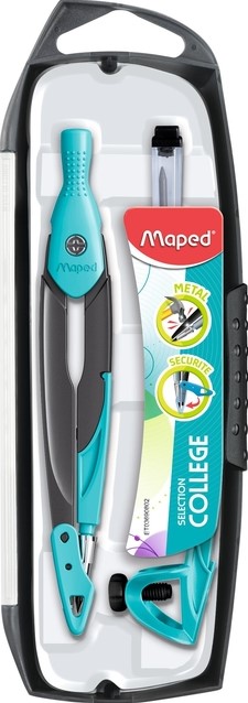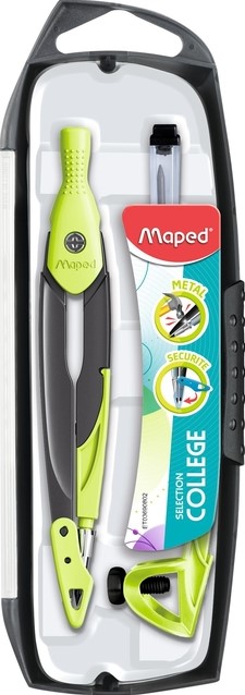Inhoud; 1 METAL OPEN passer, 1 universele adapter, 1 koker met potloodvullingen. in assorti kleuren.