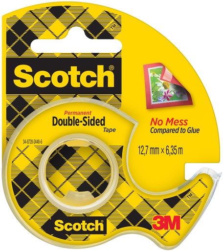 Plakband Scotch 665 12mmx6.3m dubbelzijdig + afroller