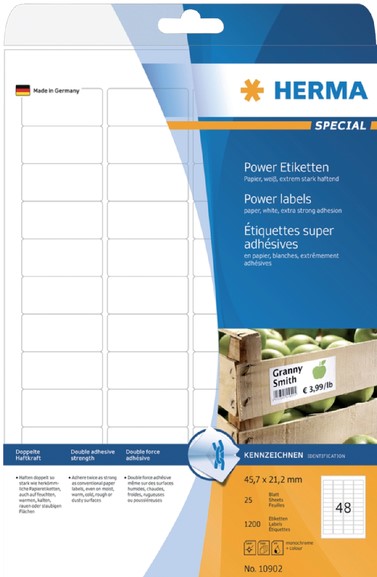 Etiket HERMA Power 10902 45.7x21.2mm wit 1200 stuks