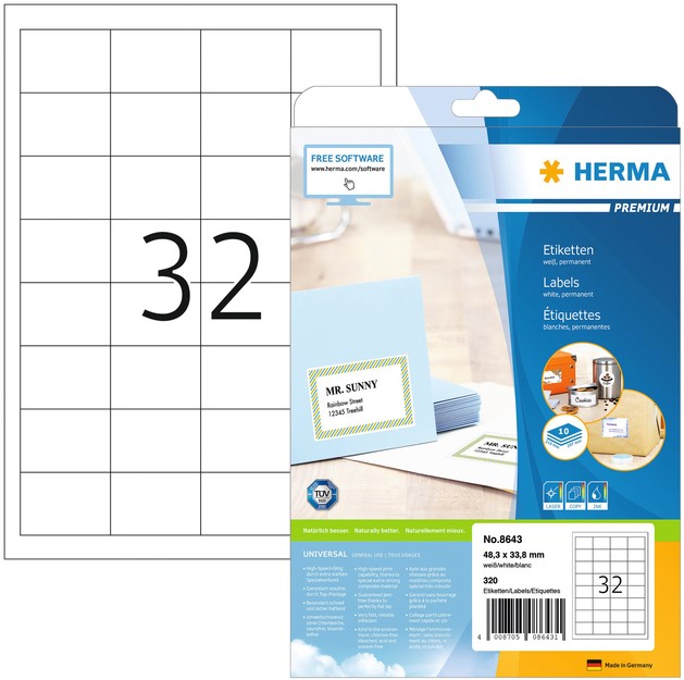 Etiket HERMA 8643 48.3x33.8mm premium wit 320 stuks