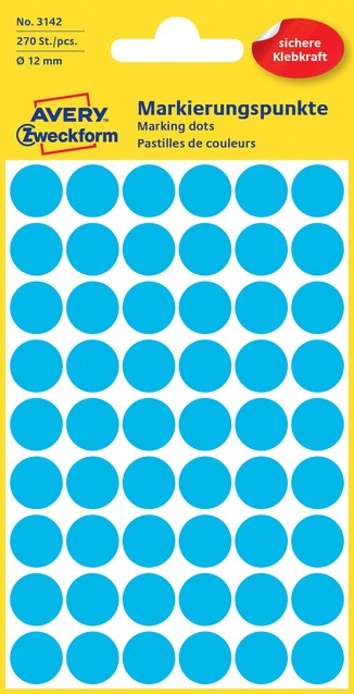 Etiket Avery 3142 rond 12mm blauw 270 stuks