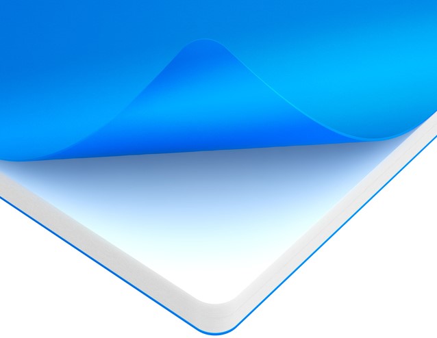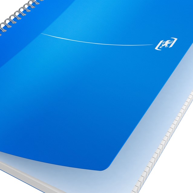 Een spiraalblok met flexibele, waterafstotende kunststof kaft in vrolijke kleuren.