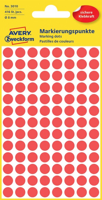 Etiket Avery 3010 rond 8mm rood 416 stuks