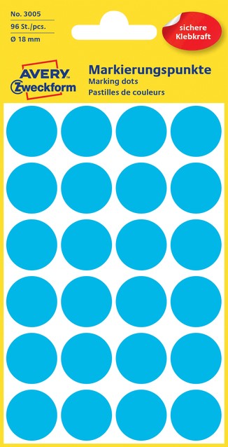 Etiket Avery 3005 rond 18mm blauw 96 stuks