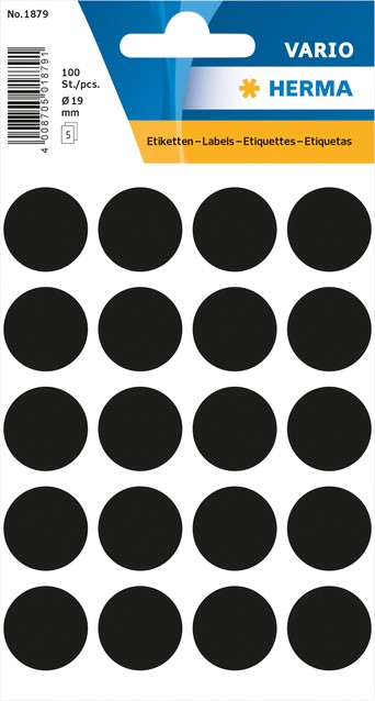 Etiket HERMA 1879 rond 19mm zwart 100 stuks
