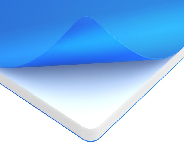 Met flexibele, waterafstotende kunststof kaft in vrolijke kleuren.