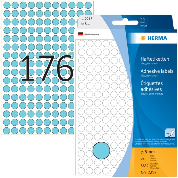 Etiket HERMA 2213 rond 8mm blauw 5632 stuks