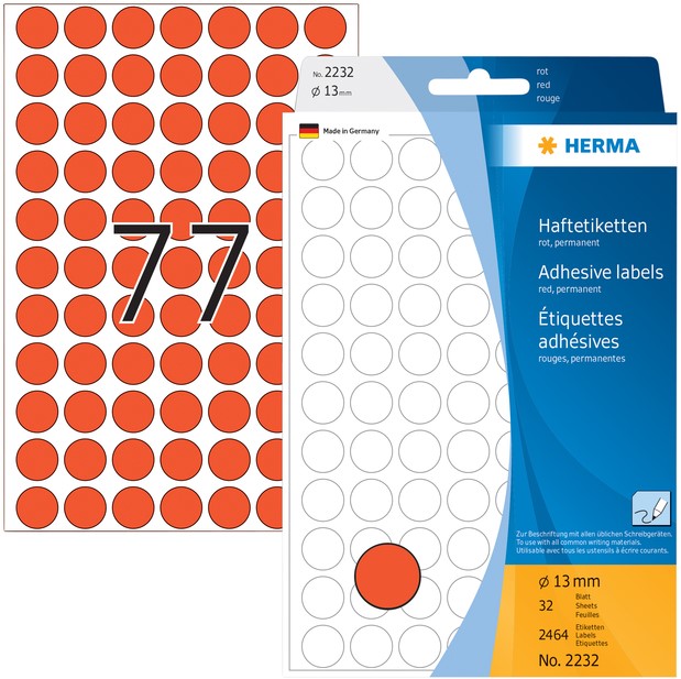 Etiket HERMA 2232 rond 13mm rood 2464 stuks