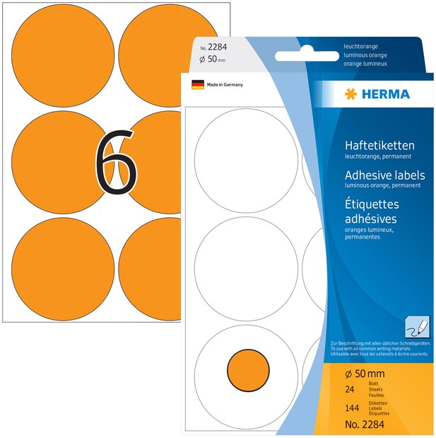 Etiket HERMA 2284 rond 50mm fluor oranje 144 stuks