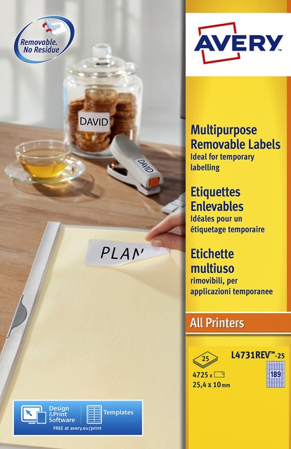 Etiket Avery L4730REV-25 17.8x10mm wit 6750 stuks