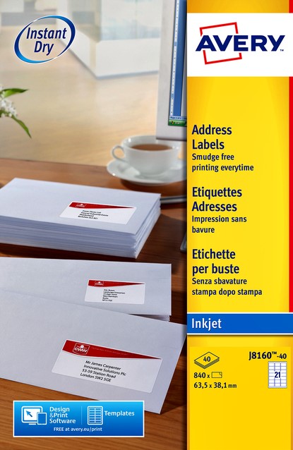 Etiket Avery J8160-40 63.5x38.1mm wit 840 stuks