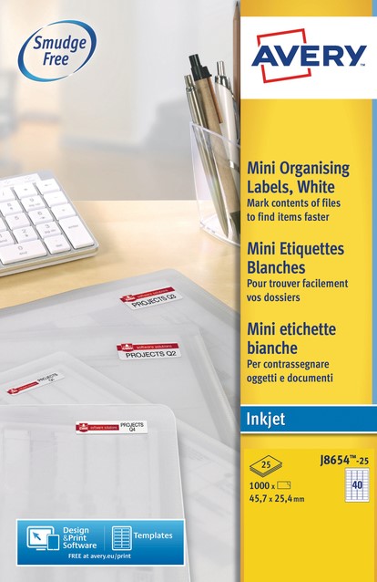 Etiket Avery J8654-25 45.7x25.4mm wit 1000 stuks