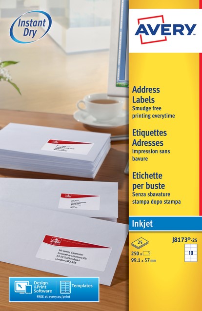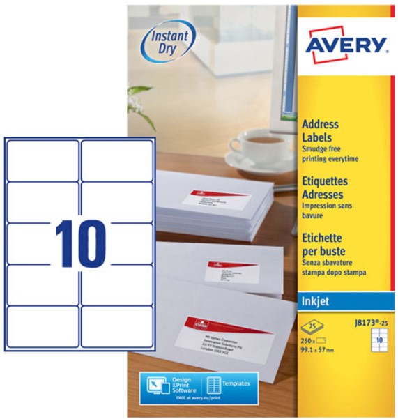 Etiket Avery J8173-25 99.1x57mm wit 250 stuks