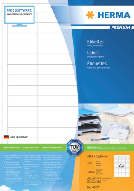 Etiket HERMA 4607 48.3x16.9mm premium wit 12800 stuks