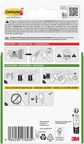 De Command™ Jumbo Universele plakspijker is onze innovatieve oplossing voor het veilig en zonder beschadiging ophangen van schilderijen zonder spijkers of schroeven te gebruiken. Hij hecht sterk en laat na verwijdering geen sporen achter dankzij de 3M rekontgrendelingstechnologie.