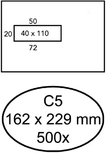 Envelop Hermes C5 162x229mm venster 4x11links 500 stuks