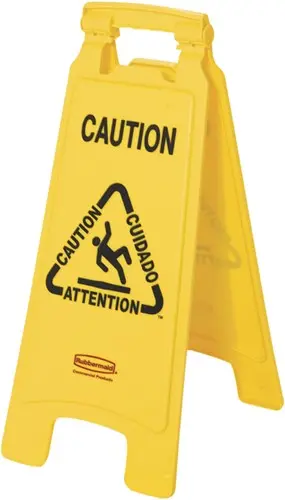 Waarschuwingsbord Rubbermaid tweezijdig meertalig 64cm geel