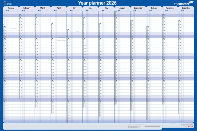 Jaarplanner 2026 Legamaster 1 persoon 90x60cm horizontaal gelamineerd Engelstalig
