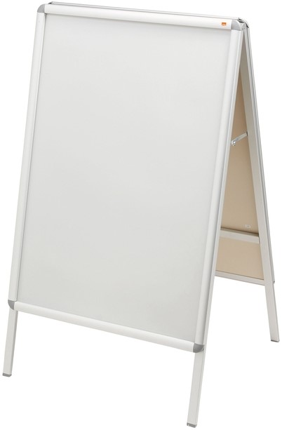 Vrijstaand, dubbelzijdig stoepbord voor de veilige presentatie van posters, mededelingen en informatie. De handige aluminium clicklijst zorgt voor een professionele afwerking en maakt het mogelijk snel en eenvoudig de inhoud te wisselen