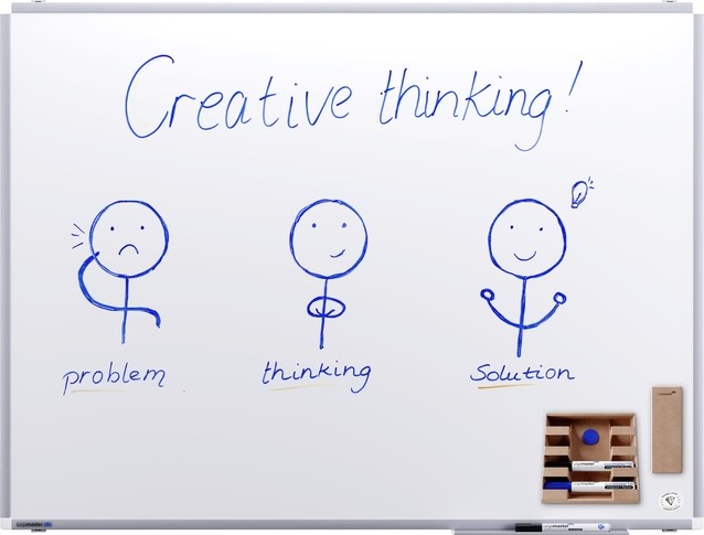 Ready to Play, meteen aan de slag met de meegeleverde zwarte en blauwe Legamaster whiteboard marker TZ1, kartonnen bordwisser, kartonnen markerhouder en magneet.