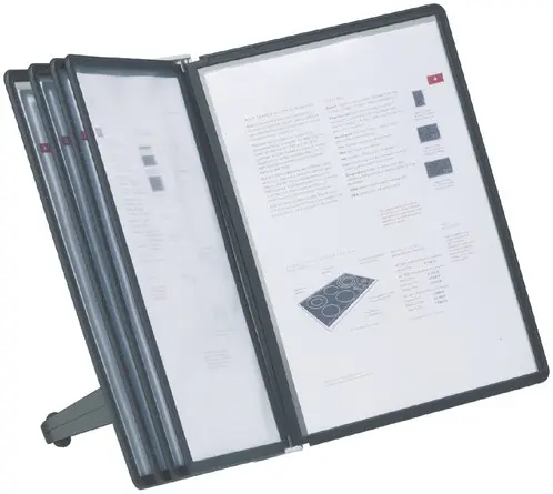 Tafelstandaard met 5 zwarte A4 zichtpanelen van polypropyleen.