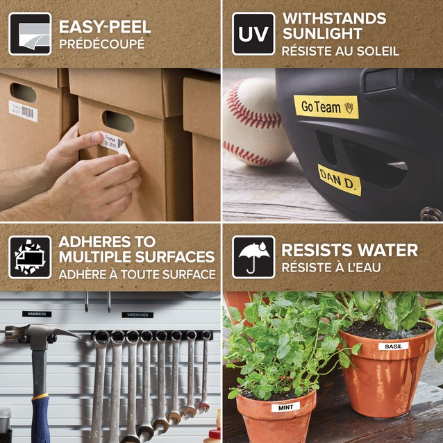 De standaard Dymo D1 tapes zijn geschikt voor gebruik op gladde en vlakke ondergrond.