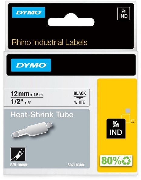 Labeltape Dymo Rhino industrieel krimpkous 12mm zwart op wit