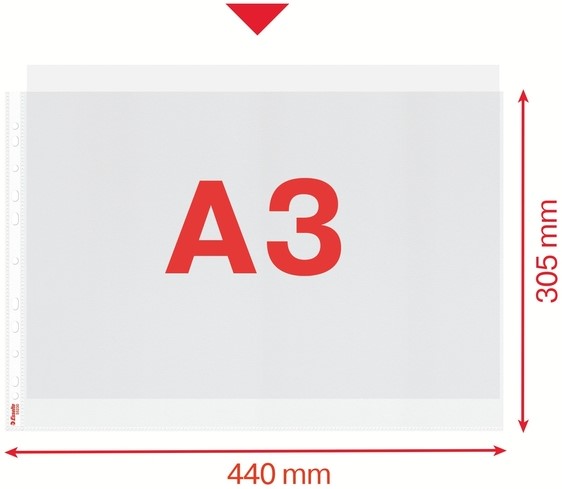 Showtassen met een heldere matte afwerking, ideaal voor het opbergen van tekeningen, plannen, posters van een groter formaat. De verstevigde strook met 11 gaten en meerdere perforaties maakt het mogelijk om documenten na het vouwen van de showtas gemakkelijk op te bergen in ordners en ringbanden van A4-formaat. Opent aan de bovenkant voor gemakkelijke toegang tot documenten zonder het ringbandmechanisme open te maken. Het copy safe en zuurvrije materiaal zorgt voor een langdurige bescherming van de documenten. Gemaakt van PP (polypropyleen) met 30% pre-consumer plastic, 100% recyclebaar.