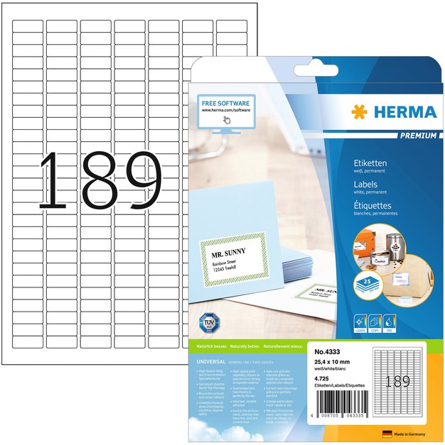 Etiket HERMA 4333 25.4x10mm A4 4725 stuks