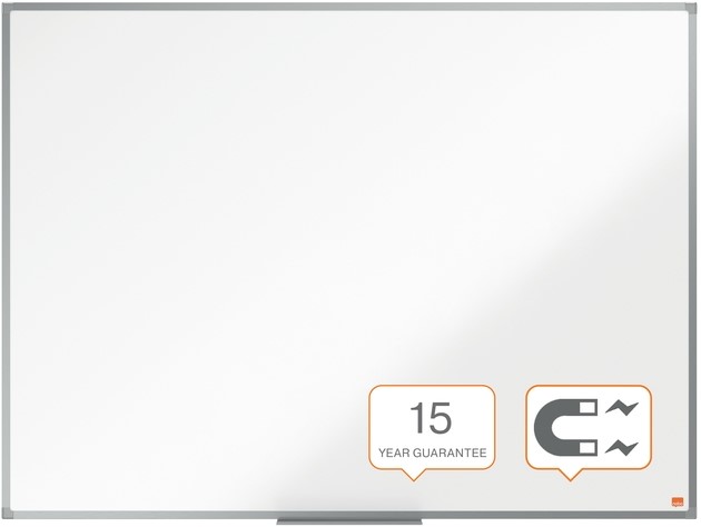 Magnetisch stalen whiteboard met een geanodiseerd aluminium frame. Bevestigd aan de wand door hoekmontage en voorzien van een pennengoot. Het magnetische gelakt stalen whiteboard oppervlak levert een verhoogde uitwisbaarheid voor regelmatig gebruik.