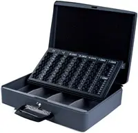 Geldkist met euro muntsorteerbak en extra draaggreep.