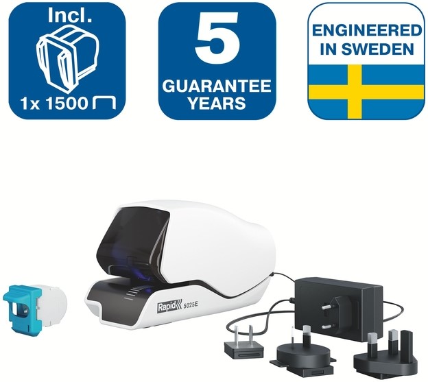Nietmachine Rapid Supreme contactloos elektrisch 5025e 25 vel wit
