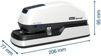 Met de Rapid 20E elektrische nietmachine kun je moeiteloos tot 20 vellen papier tegelijk nieten (80 g/m²), waardoor je thuis of op het werk tijd bespaart.