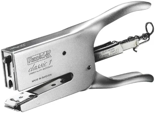 Een matte "Platinum"-chroomlaag op de beroemde klassieke niettang, met verstelbaar aambeeld voor nieten en speldhechten. Geen vingerafdrukken meer en een betere grip door de matte chroomlaag. Ideaal voor postkantoor, winkel, thuis en op kantoor.