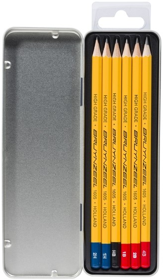 De verpakking bevat 6 potloden in de volgende hardheden: 2H, 1H, HB, 1B, 2B en 4B.