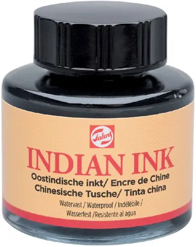Oost-Indische inkt is verdunbaar met water en na droging watervast.