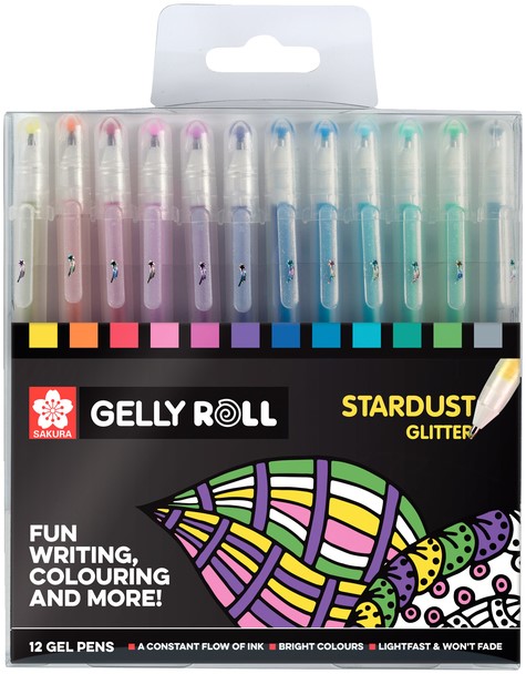 Set met 12 glitter-effect Sakura Gelly Roll Stardust kleuren.