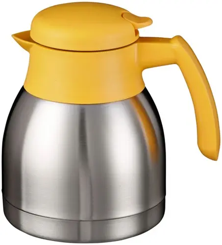 Met een inhoud van 1 liter, met een gele kop voor het schenken van thee of heet water.