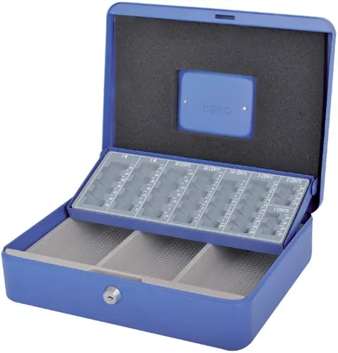 Geldkist Pavo met muntsorteerbak 300x240x90mm blauw