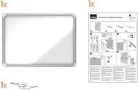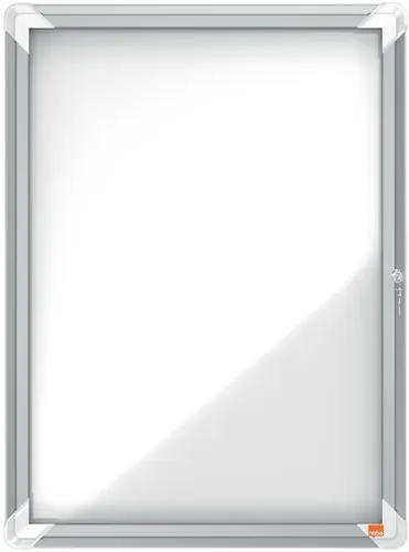 Afsluitbare magnetische binnenvitrine met een scharnierende glazen deur en slot aan de zijkant. Voorzien van een modern stijlvol aluminium frame en hoekbevestiging. Uitstekend magnetisch oppervlak om mededelingen op weer te geven.