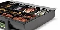 Verwijderbaar compartiment met 8 muntenvakjes.