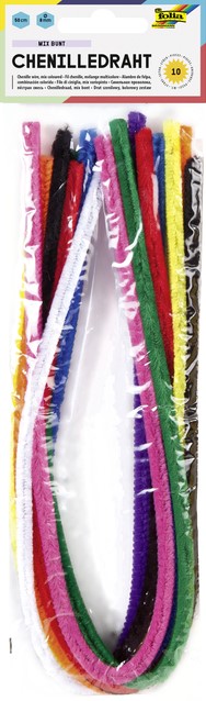 Chenilledraad Folia 50cm 8mm doorsnede 10 stuks assorti